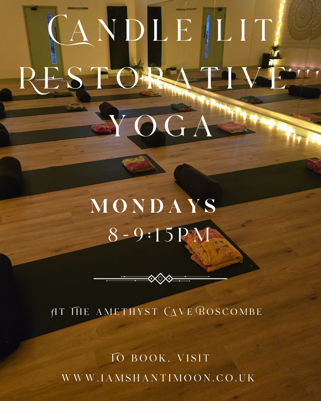 Why not spend your Monday evening relaxing and unwinding in a candlelit setting in a beautiful purpose build studio with heated floors.